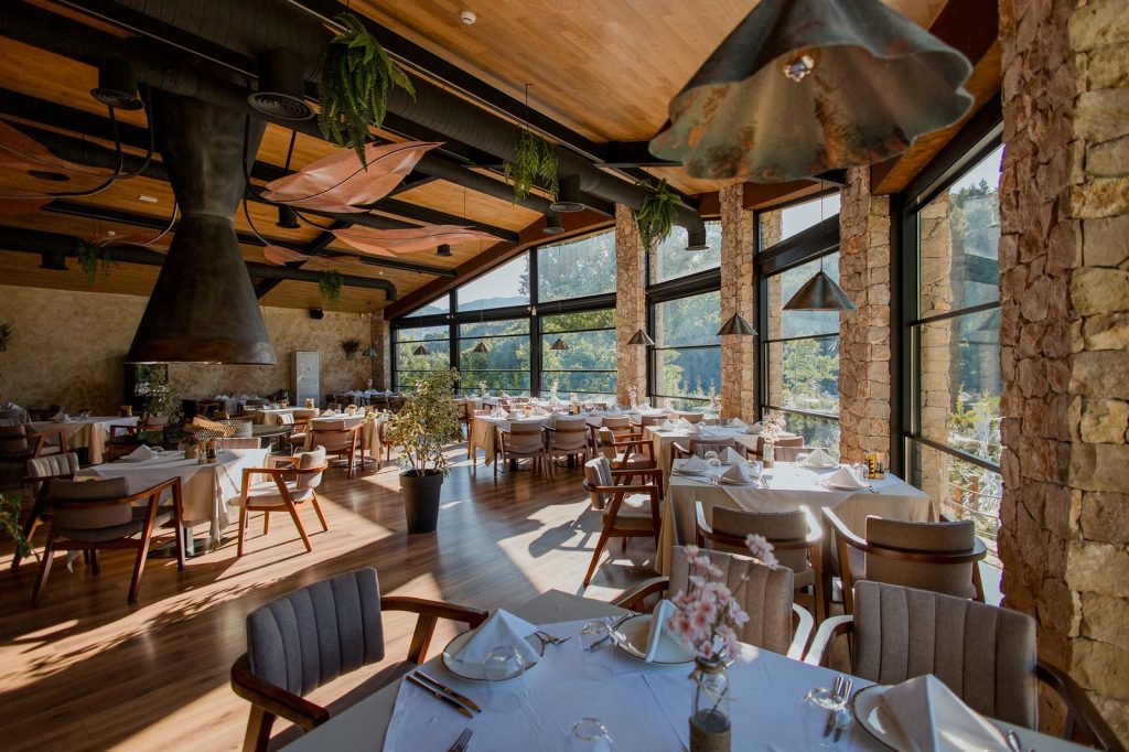 - The Main Restaurant Hall – Built with stone and glass walls that blend the indoor and outdoor space, offering a rare combination of traditional warmth and minimalist modern style. Ideal for intimate weddings, refined dinners, and moments of quiet elegance. Without hesitation, we call it the most beautiful wedding hall.